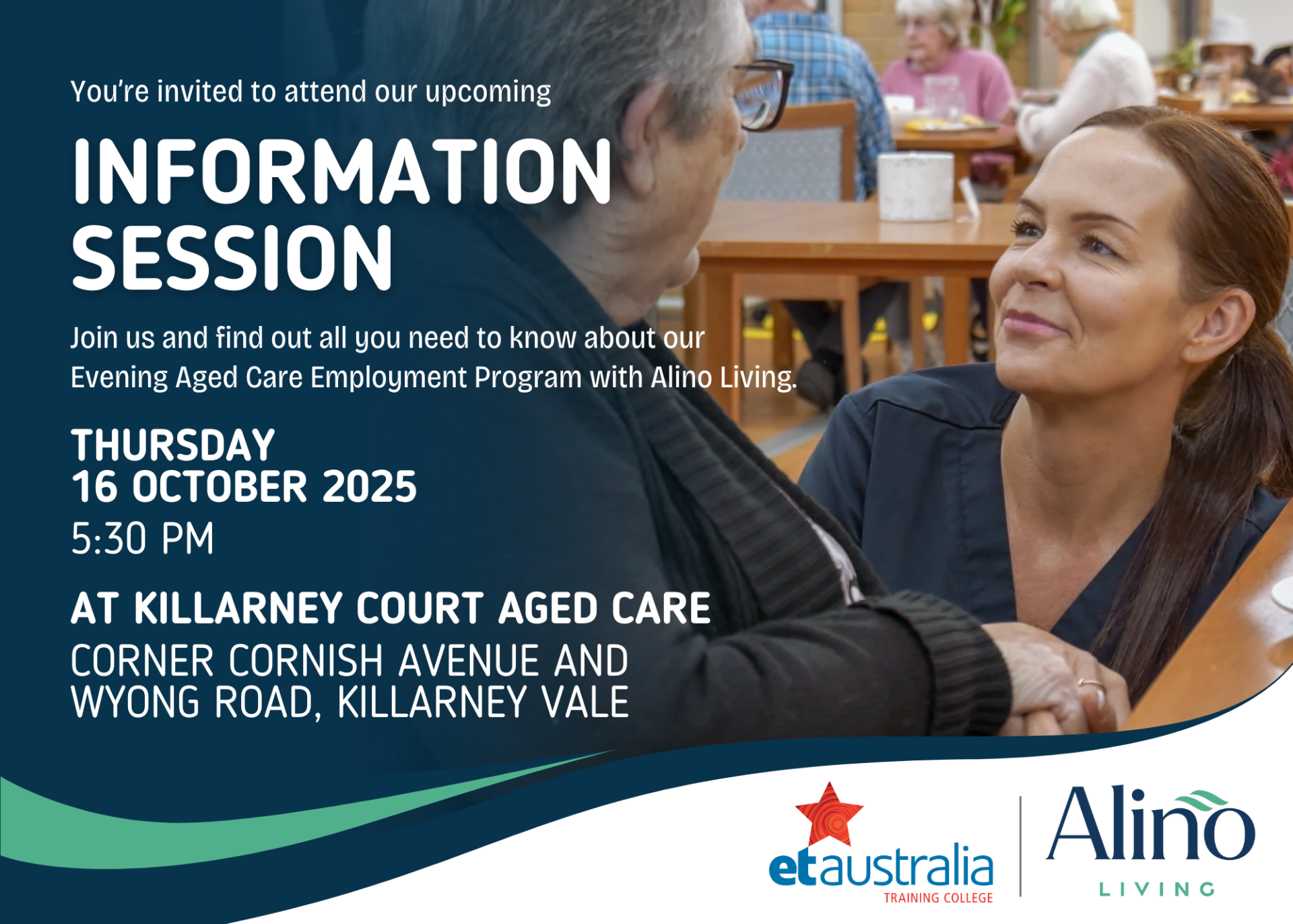 Join us for an Information Session about our upcoming EVENING Aged Care Employment Program in partnership with Alino Living!