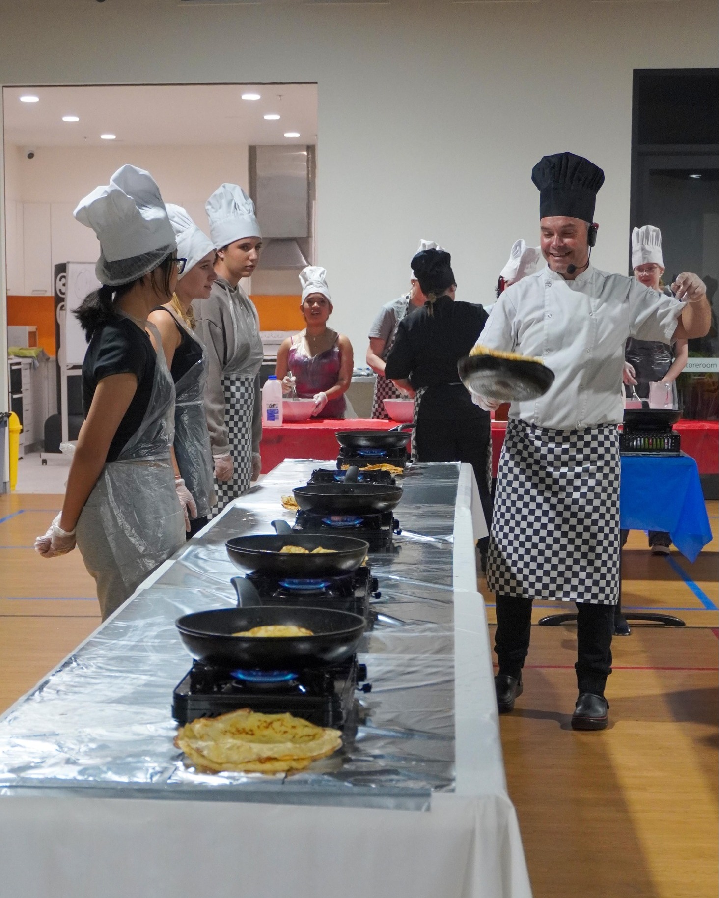 To celebrate a year of learning the French language, students will have the opportunity to participate in a cooking incursion delivered entirely in French! Students will get a hands-on experience to make authentic French crêpes to eat and enjoy. They will learn key French terms related to ingredients and methods of cooking and a greater understanding of the French culture will be gained. Some lucky parents/carers might be able to encourage their child to repeat the process at home, so the entire household can enjoy crêpes.